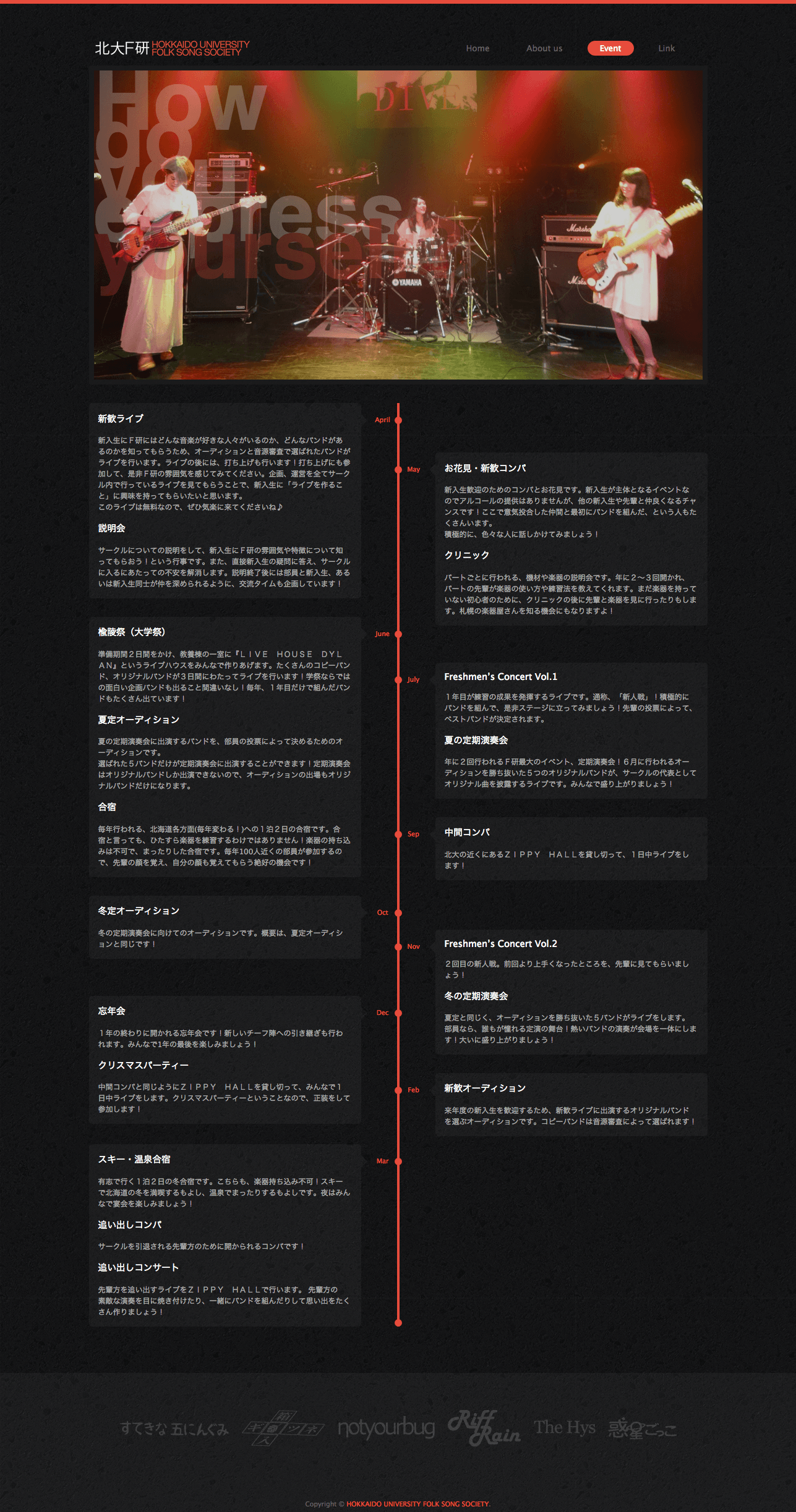 Eventのページは見やすいようタイムライン形式で表示しています。