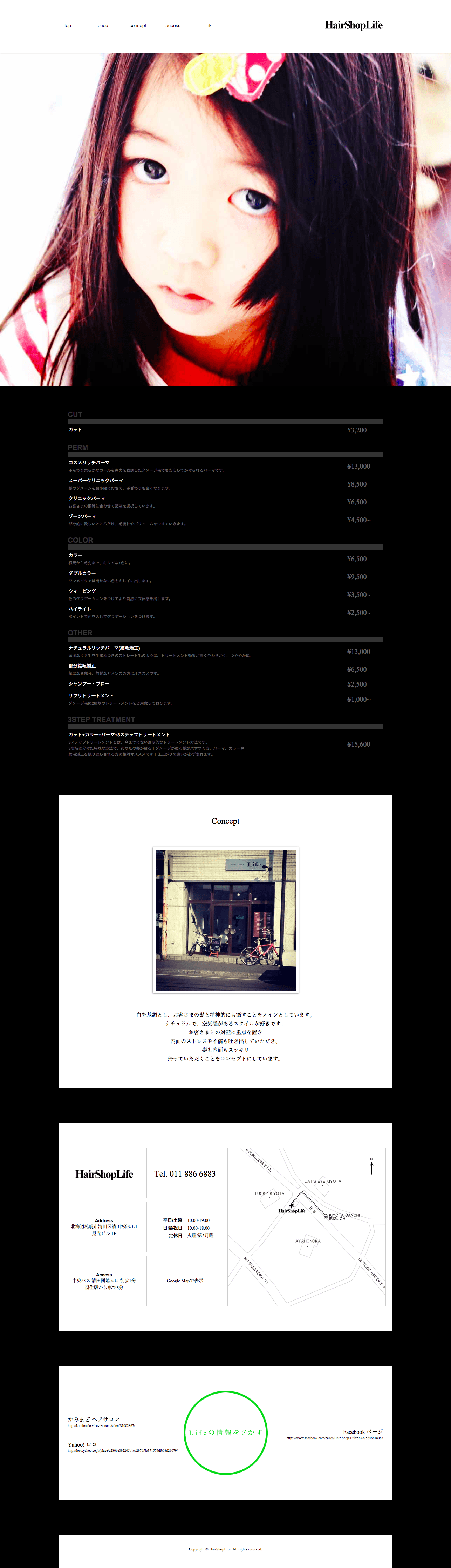 白色と清潔さをコンセプトとするお店の雰囲気と、オーナーの「ナチュラルで空気感のあるスタイルが好き」からインスピレーションを受け、デザインを全面に出したシングルページのウェブサイトを制作しました。